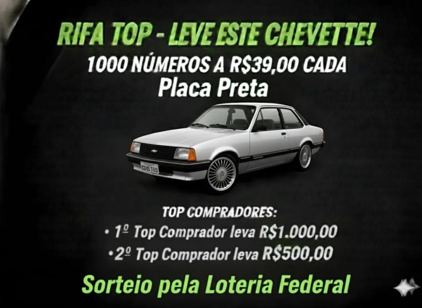 Concorre com 2 númerosRifa exclusiva! leve para casa o classico CHEVETTE 1989-o icone dos anos 80 e 90!